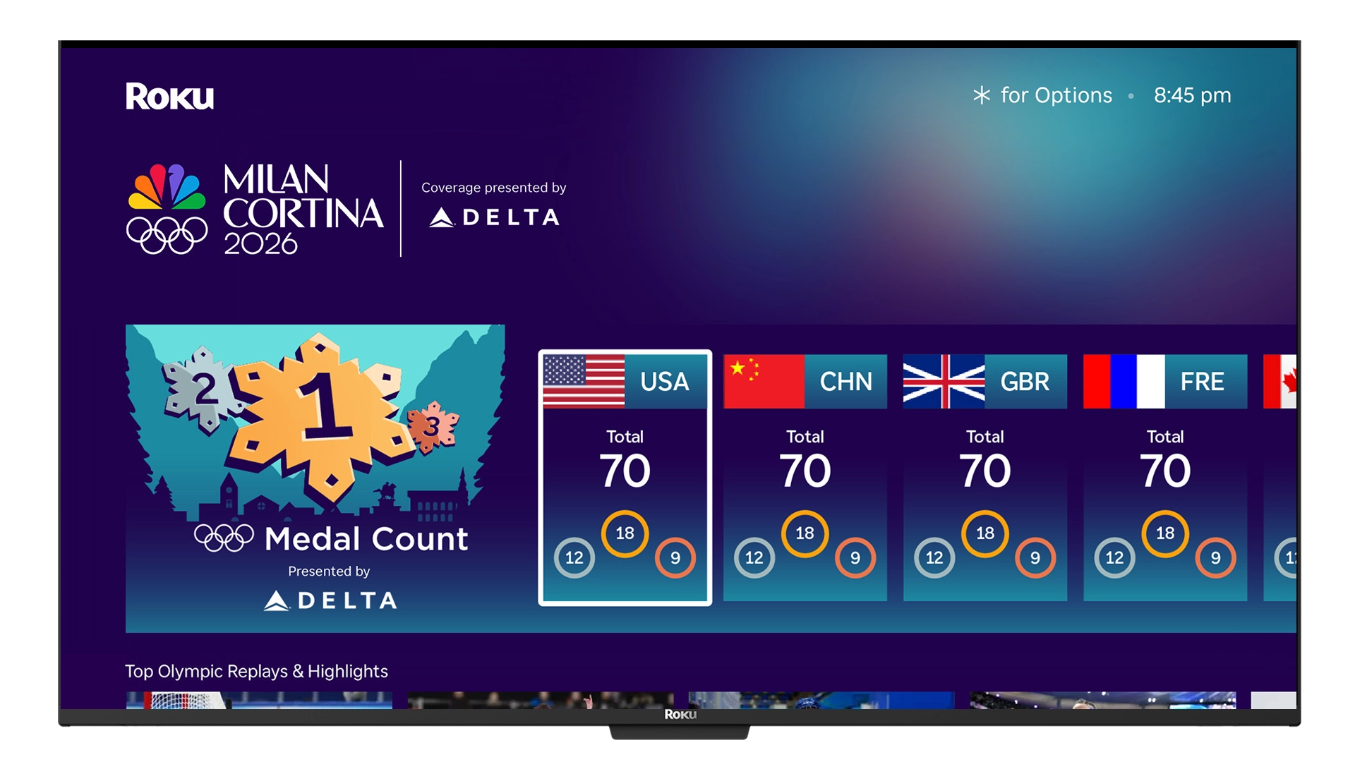 The Olympics destination will feature more than 2,500 hours of programming available to Roku users with a Peacock subscription. Fans on Roku can track their country’s progress with the interactive Medal Count presented by Delta and explore personalized viewing options for each live event. Roku is also bringing the spirit of the Olympic Village to Roku City, creating a playful winter escape that invites fans to step inside the magic of the Games.
