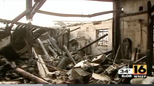 The Scranton Times-Tribune said the fire started as electricians worked on the building. An electrical arc was said to ignite ceiling tiles. Getting it put out was hampered by the facility location, accessible only by a one-lane dirt road.