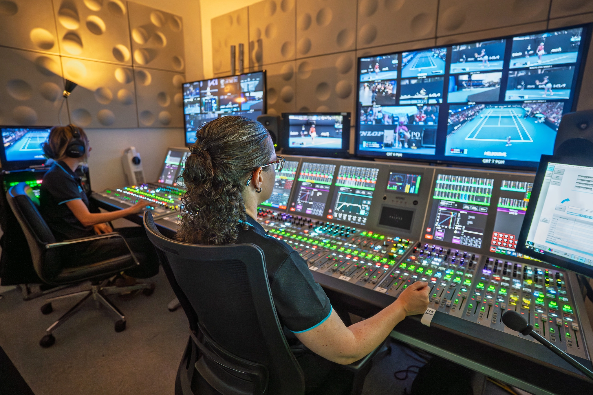 The production galleries and audio control rooms were housed at Tennis Australia’s headquarters and was connected via 500 metres of fibre and dual 700-gig data links to the central equipment room at the broadcast compound.